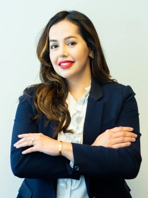 Committed to the cause of human rights, in Law School she was awarded the Public Service Honor Roll for about 300 hours of community service work. She speaks Urdu, Hindi, and Punjabi. She enjoys travel and discovering new places to eat with her husband, Wasiq.